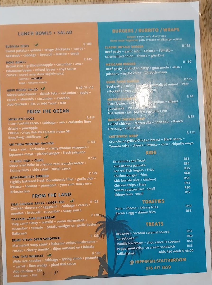 Welcome to Hippi Fish Cafe - Southbroom, a charming eatery nestled in the heart of Southbroom, Margate. Known for its cozy ambiance and pet-friendly outdoor seating, this cafe is a delightful spot for food enthusiasts and casual diners alike.